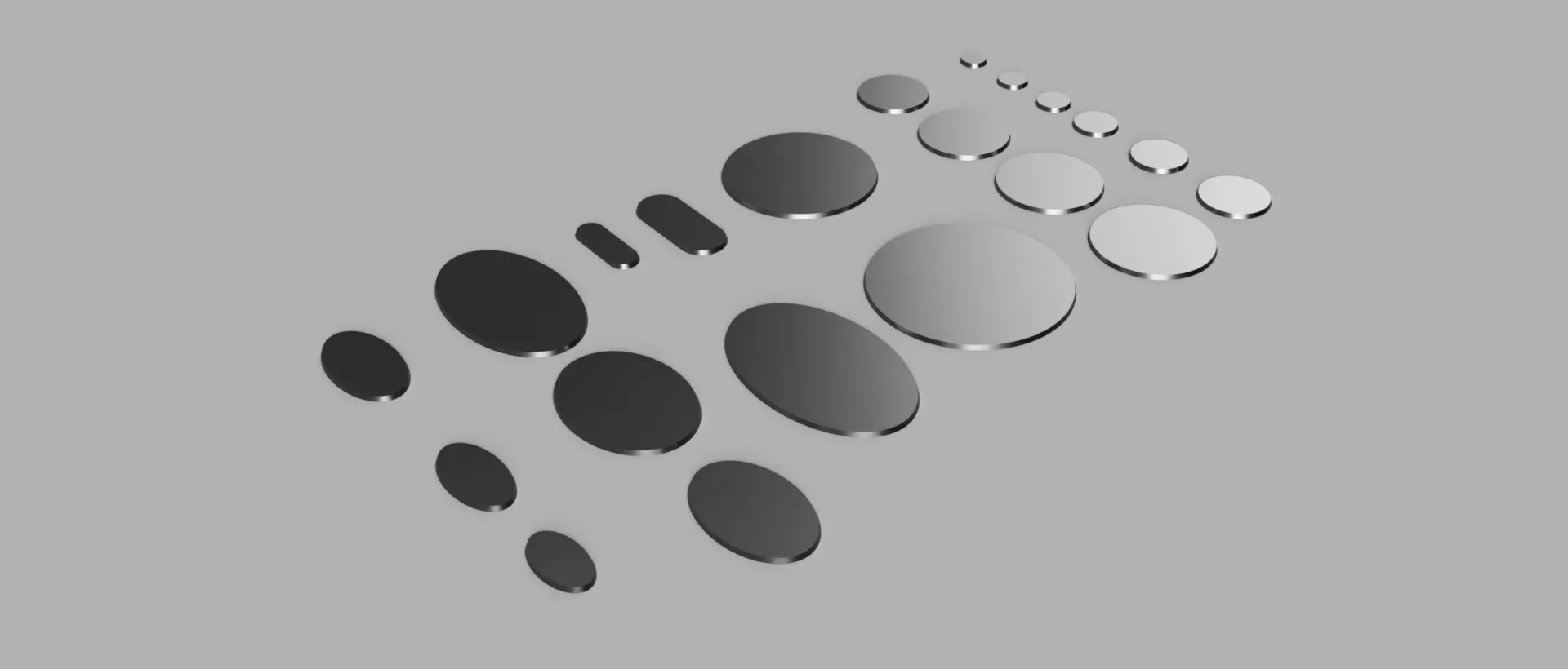 A range of circular, oval and rounded miniature bases. These are printed with an FDM printer and not resin!